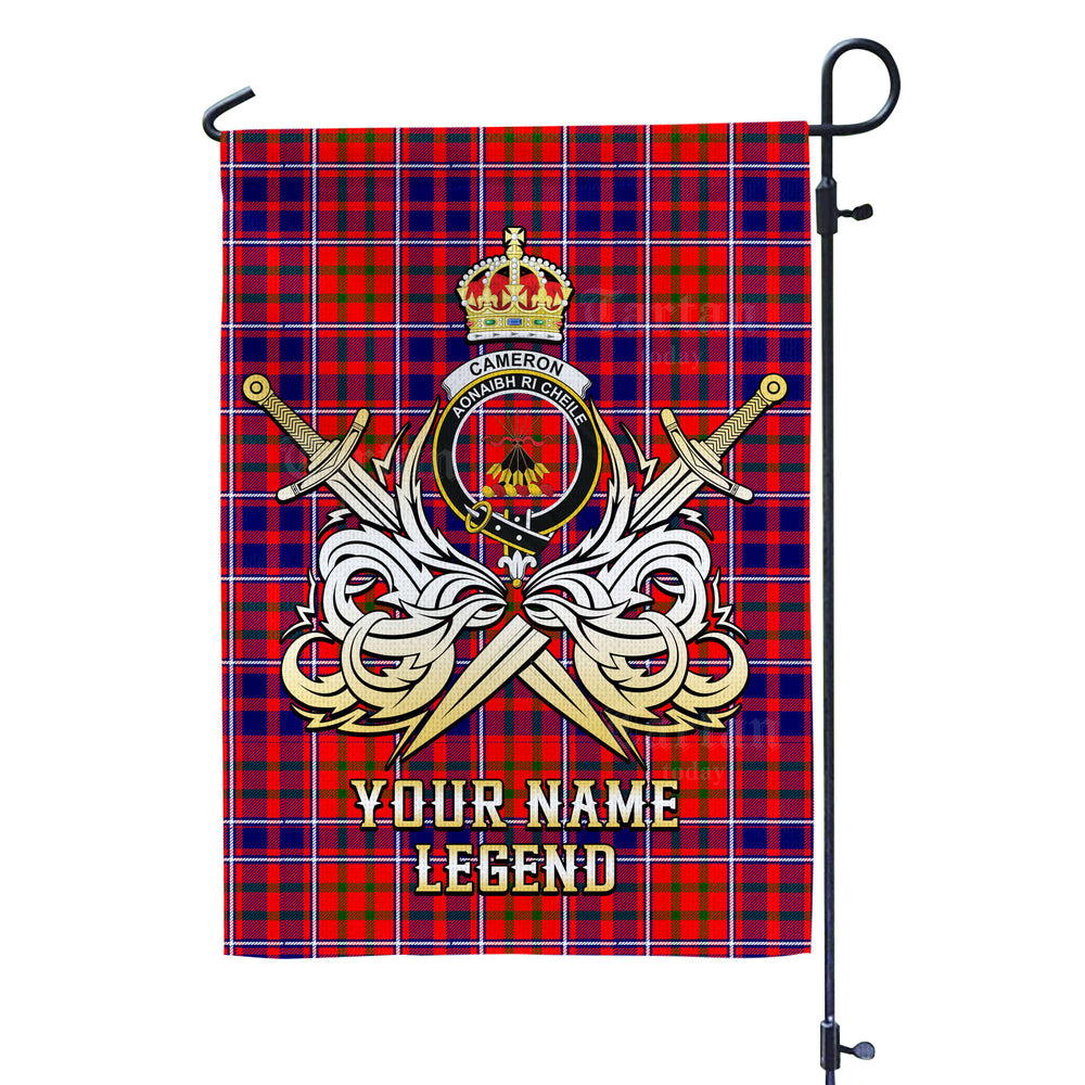 Custom Name Clan Cameron of Lochiel Modern Tartan Garden Flag with Clan Crest and the Golden Sword of Courageous Legacy QU67