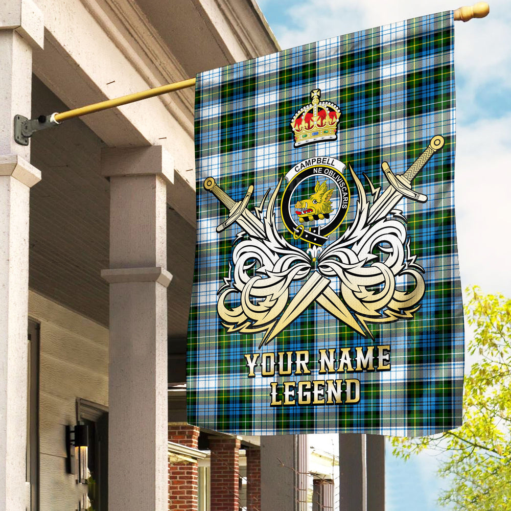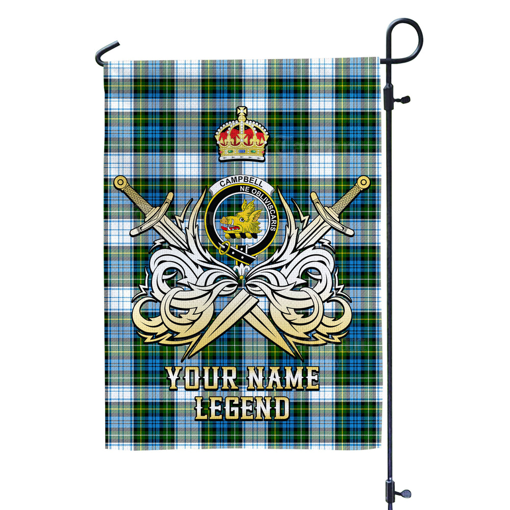 Custom Name Clan Campbell Dress Tartan Garden Flag with Clan Crest and the Golden Sword of Courageous Legacy LJ39