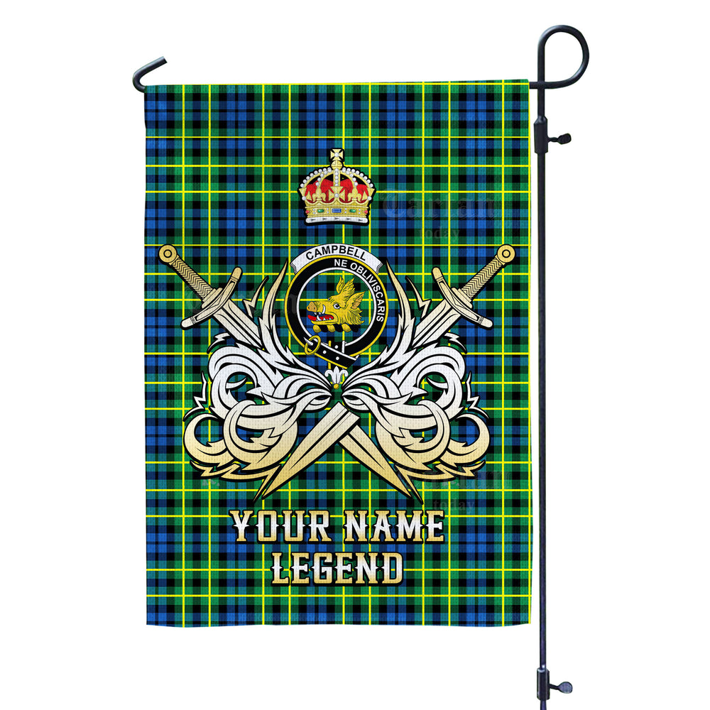 Custom Name Clan Campbell of Breadalbane Ancient Tartan Garden Flag with Clan Crest and the Golden Sword of Courageous Legacy FE48