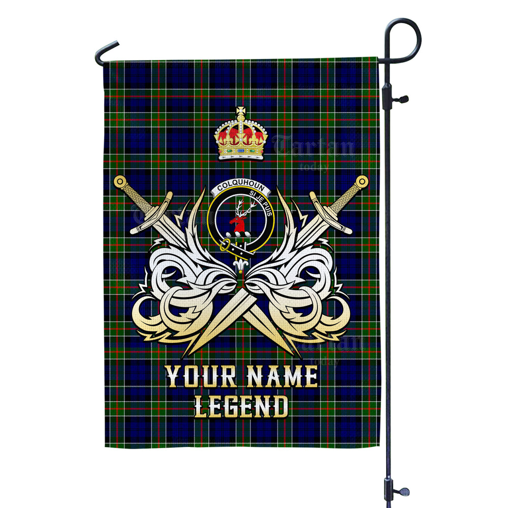 Custom Name Clan Colquhoun Modern Tartan Garden Flag with Clan Crest and the Golden Sword of Courageous Legacy KC69