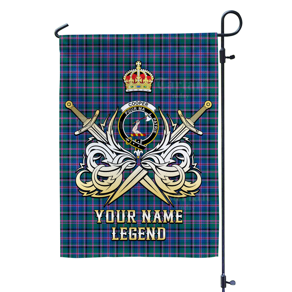 Custom Name Clan Cooper Ancient Tartan Garden Flag with Clan Crest and the Golden Sword of Courageous Legacy QJ10