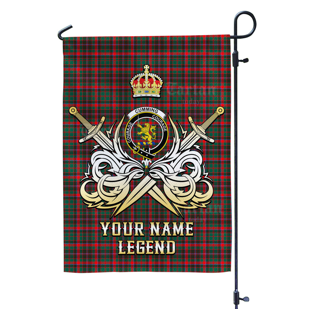 Custom Name Clan Cumming Hunting Modern Tartan Garden Flag with Clan Crest and the Golden Sword of Courageous Legacy SI28