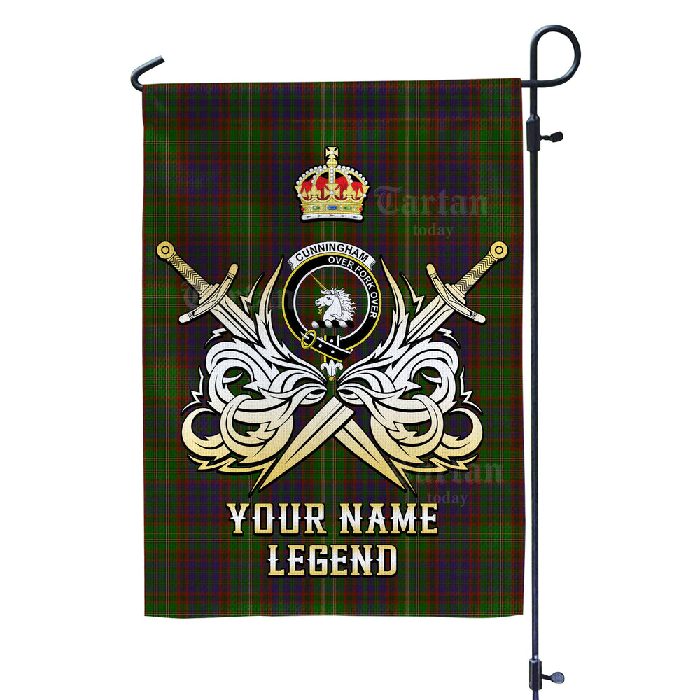 Custom Name Clan Cunningham Hunting Modern Tartan Garden Flag with Clan Crest and the Golden Sword of Courageous Legacy DY30