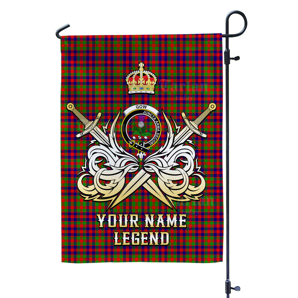 Custom Name Clan Gow of Skeoch Tartan Garden Flag with Clan Crest and the Golden Sword of Courageous Legacy IL85