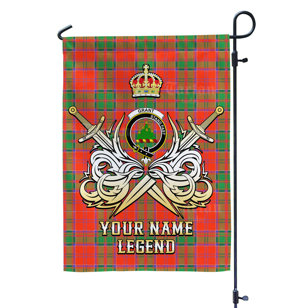 Custom Name Clan Grant Ancient Tartan Garden Flag with Clan Crest and the Golden Sword of Courageous Legacy CG68