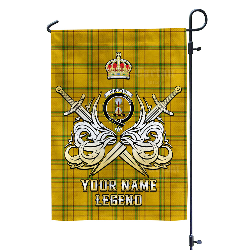 Custom Name Clan Houston Tartan Garden Flag with Clan Crest and the Golden Sword of Courageous Legacy YR61