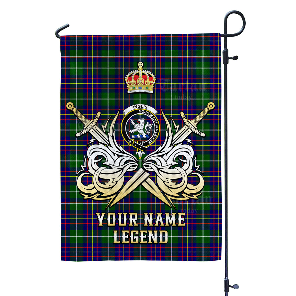 Custom Name Clan Inglis Modern Tartan Garden Flag with Clan Crest and the Golden Sword of Courageous Legacy AN25