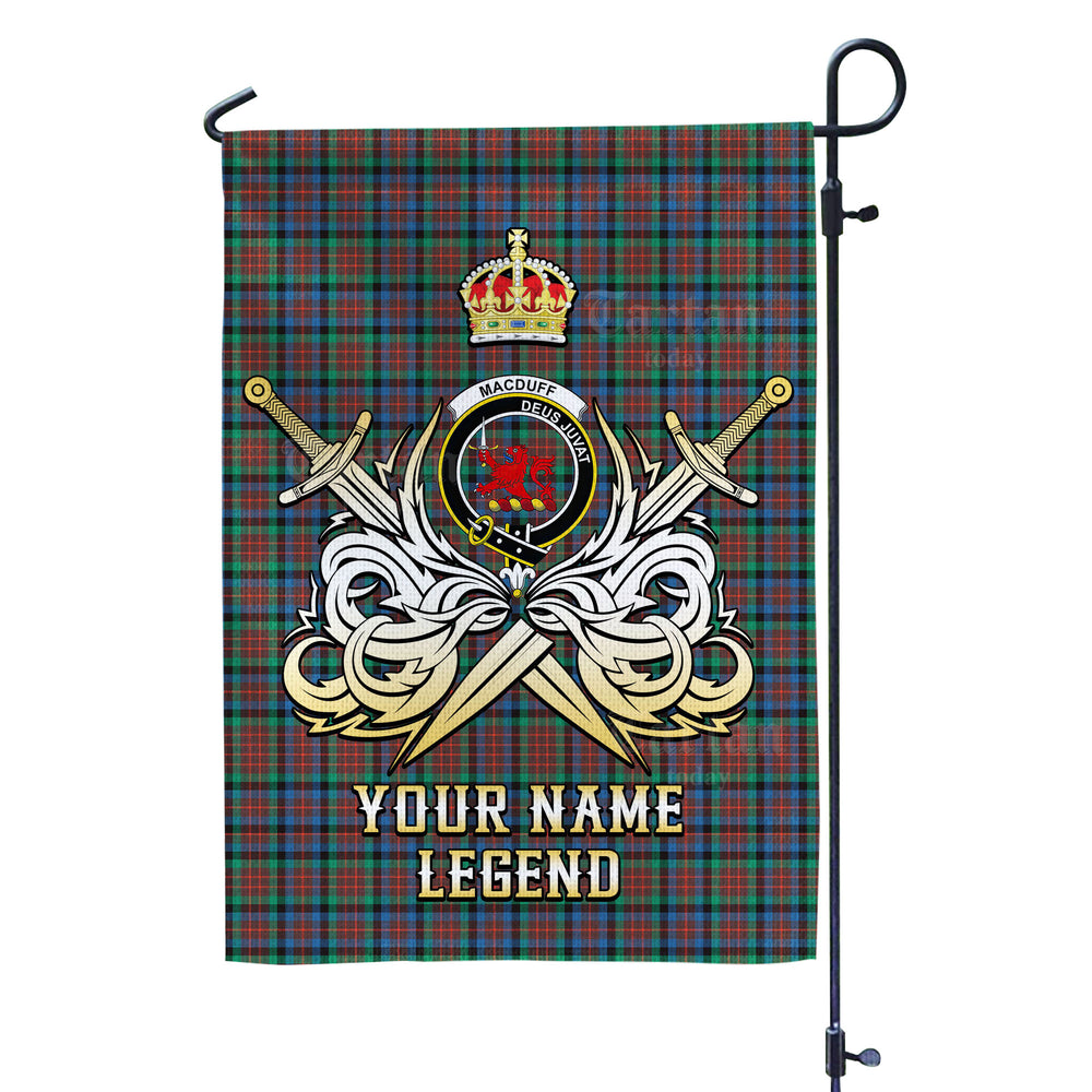 Custom Name Clan MacDuff Hunting Ancient Tartan Garden Flag with Clan Crest and the Golden Sword of Courageous Legacy EW72