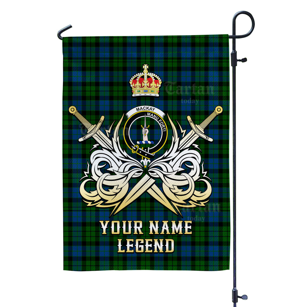Custom Name Clan MacKay ModernCREST Tartan Garden Flag with Clan Crest and the Golden Sword of Courageous Legacy KR17