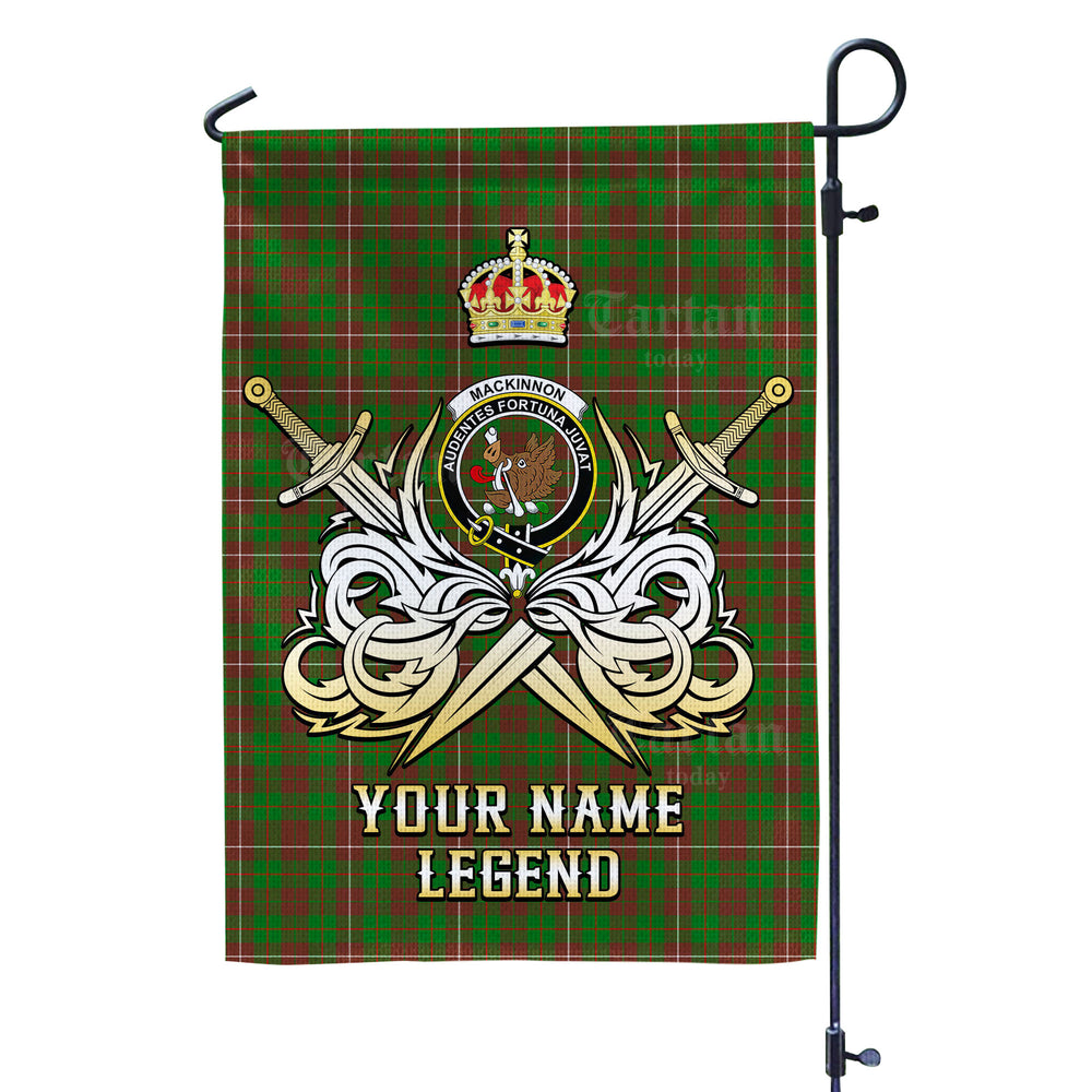Custom Name Clan MacKinnon Hunting Modern Tartan Garden Flag with Clan Crest and the Golden Sword of Courageous Legacy IW32