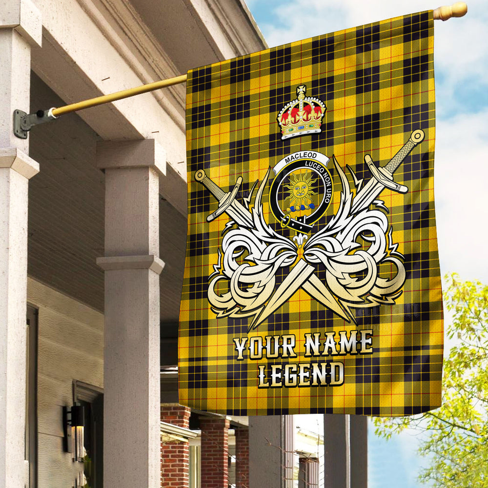 Custom Name Clan MacLeod of Lewis Ancient Tartan Garden Flag with Clan Crest and the Golden Sword of Courageous Legacy FG73