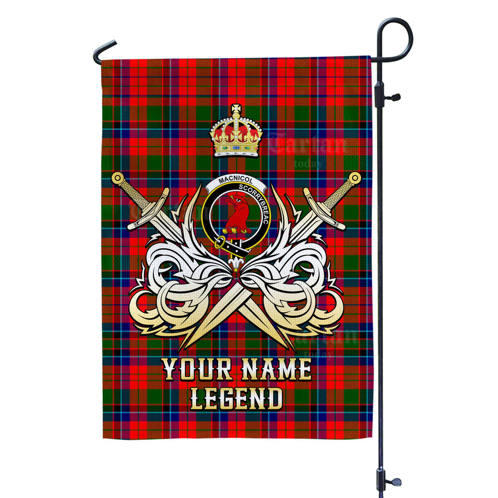 Custom Name Clan Macnicol Tartan Garden Flag with Clan Crest and the Golden Sword of Courageous Legacy JN77