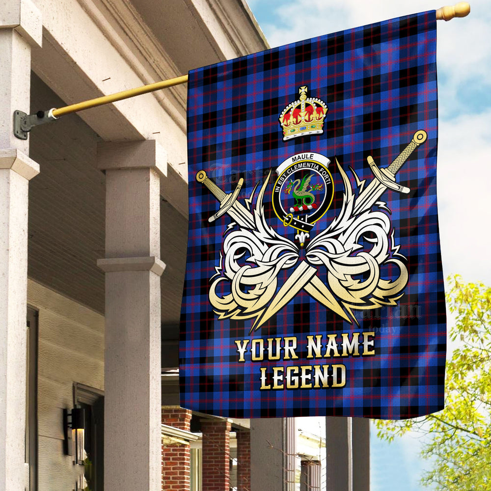 Custom Name Clan Maule Tartan Garden Flag with Clan Crest and the Golden Sword of Courageous Legacy QP81