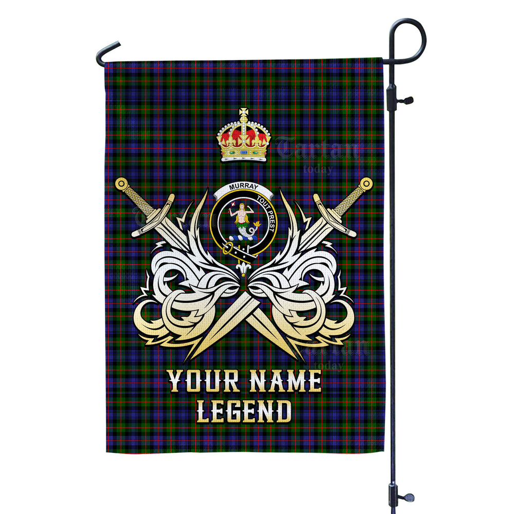 Custom Name Clan Murray of Atholl Modern Tartan Garden Flag with Clan Crest and the Golden Sword of Courageous Legacy JK88