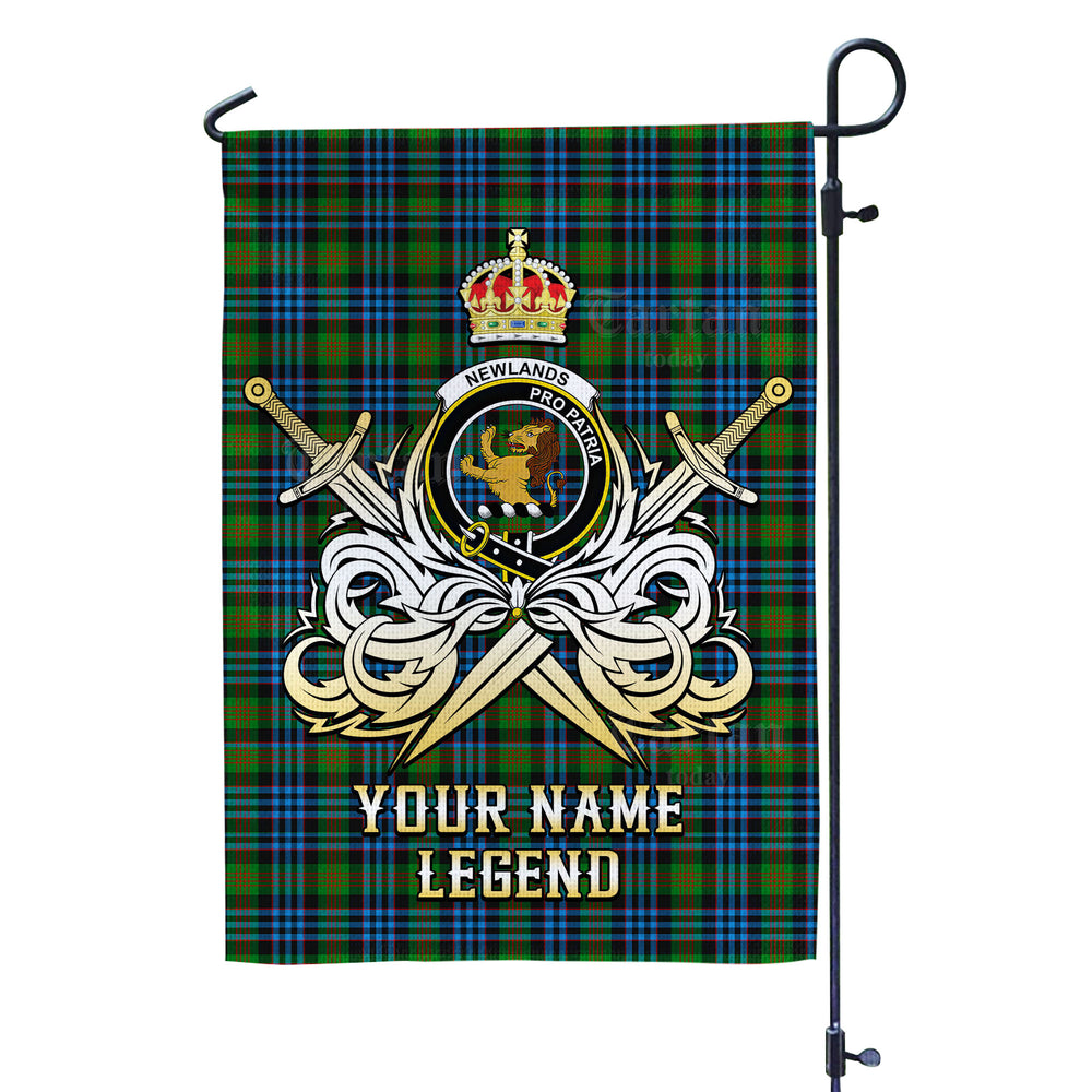 Custom Name Clan Newlands Tartan Garden Flag with Clan Crest and the Golden Sword of Courageous Legacy NG49