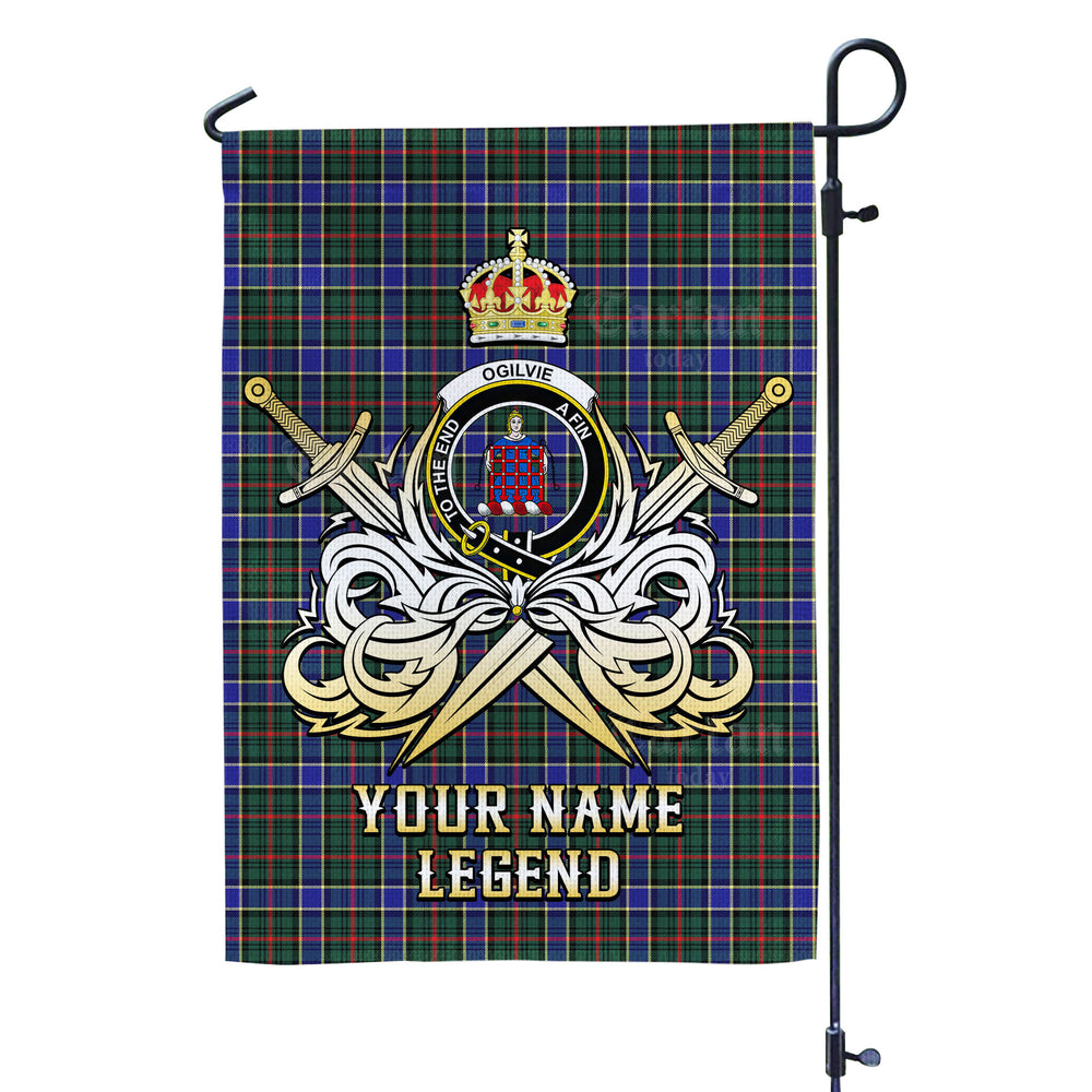 Custom Name Clan Ogilvie Hunting Modern Tartan Garden Flag with Clan Crest and the Golden Sword of Courageous Legacy RZ48
