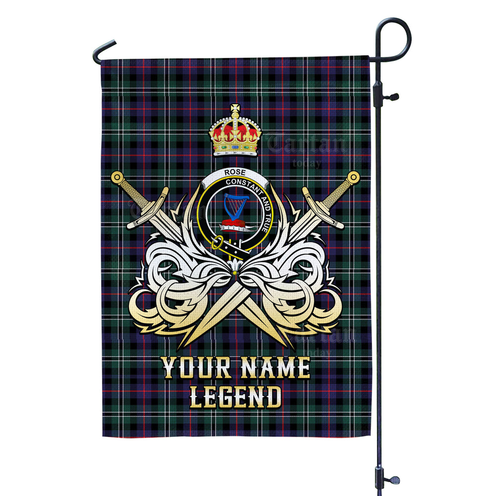 Custom Name Clan Rose Hunting Modern Tartan Garden Flag with Clan Crest and the Golden Sword of Courageous Legacy QZ42
