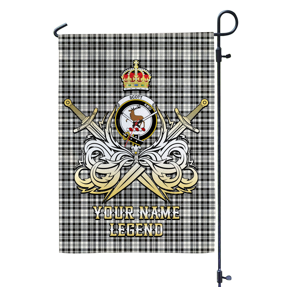 Custom Name Clan Scott Black & White Ancient Tartan Garden Flag with Clan Crest and the Golden Sword of Courageous Legacy OB15