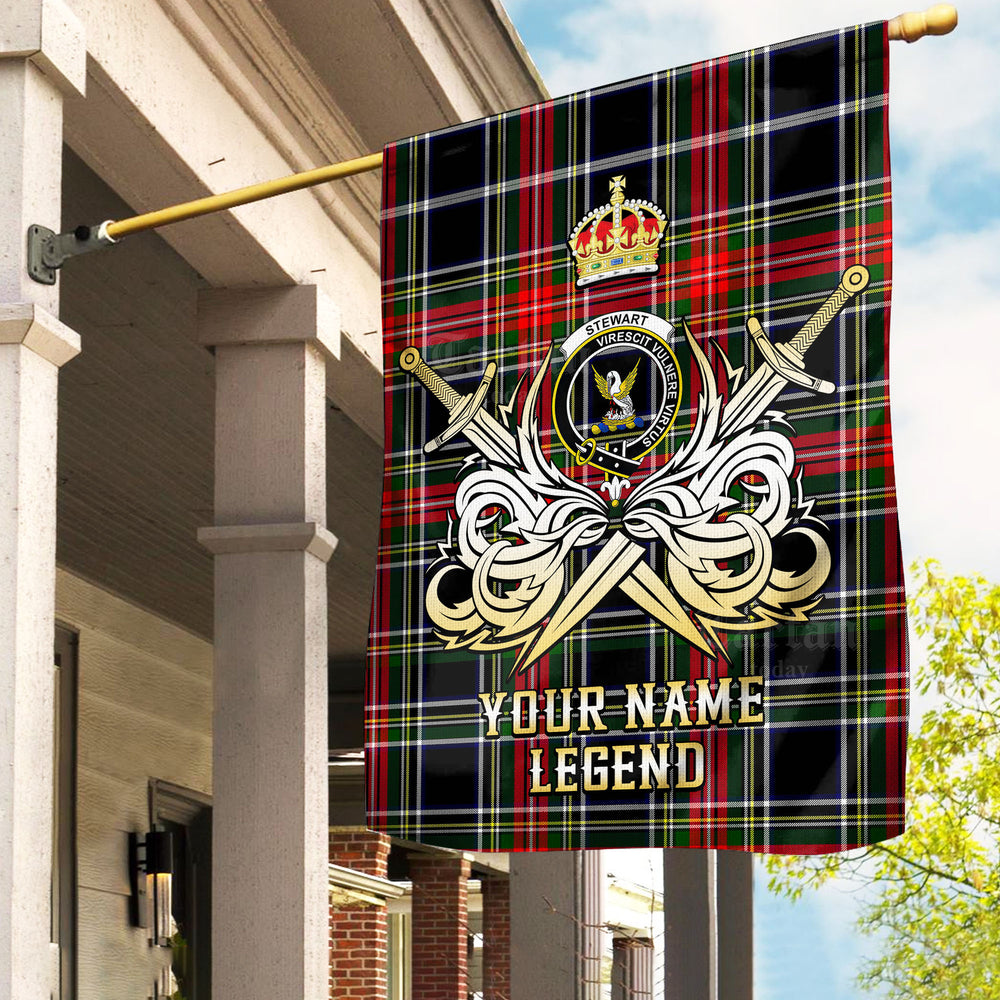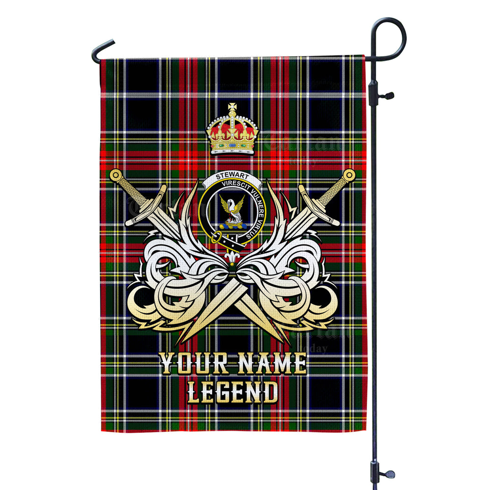 Custom Name Clan Stewart Black Tartan Garden Flag with Clan Crest and the Golden Sword of Courageous Legacy NG96