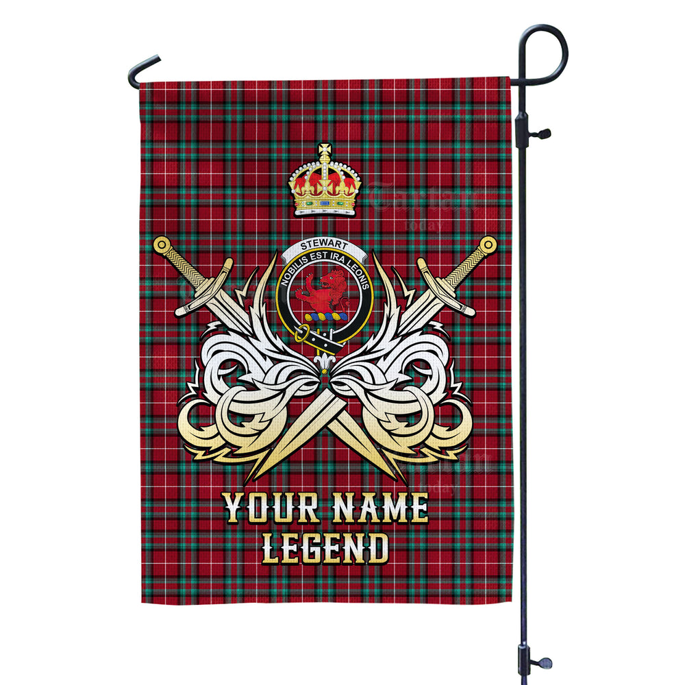 Custom Name Clan Stewart (Stuart) of Bute Tartan Garden Flag with Clan Crest and the Golden Sword of Courageous Legacy LI19