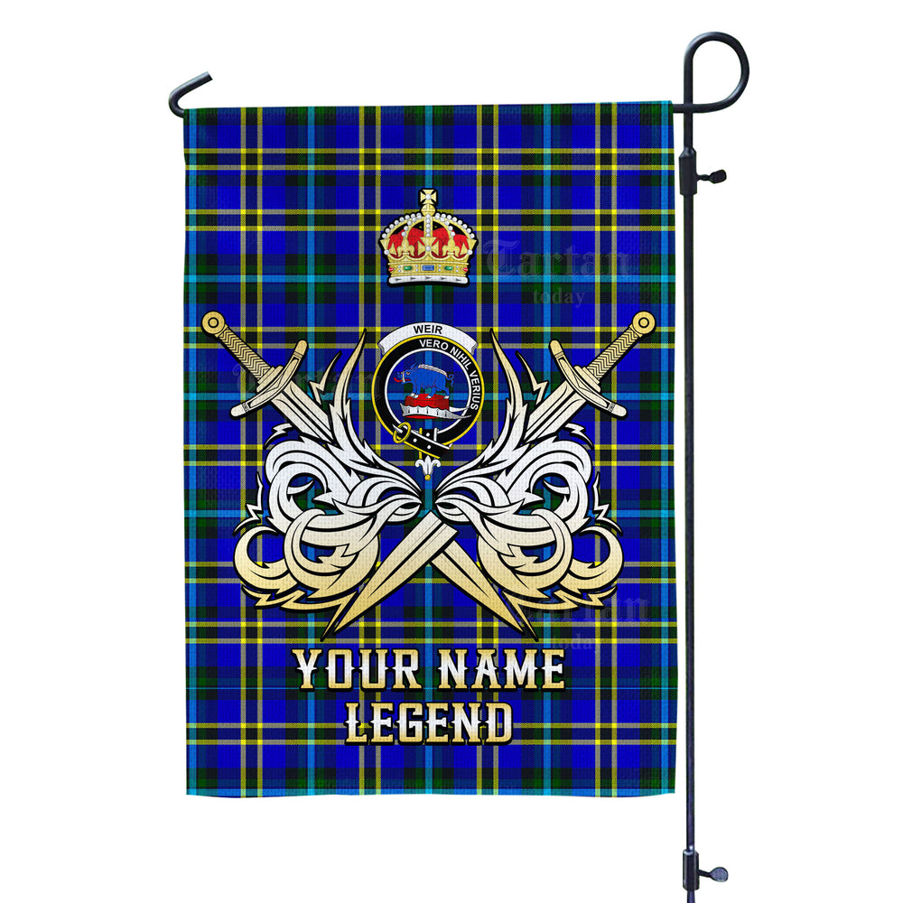 Custom Name Clan Weir Modern Tartan Garden Flag with Clan Crest and the Golden Sword of Courageous Legacy PM48