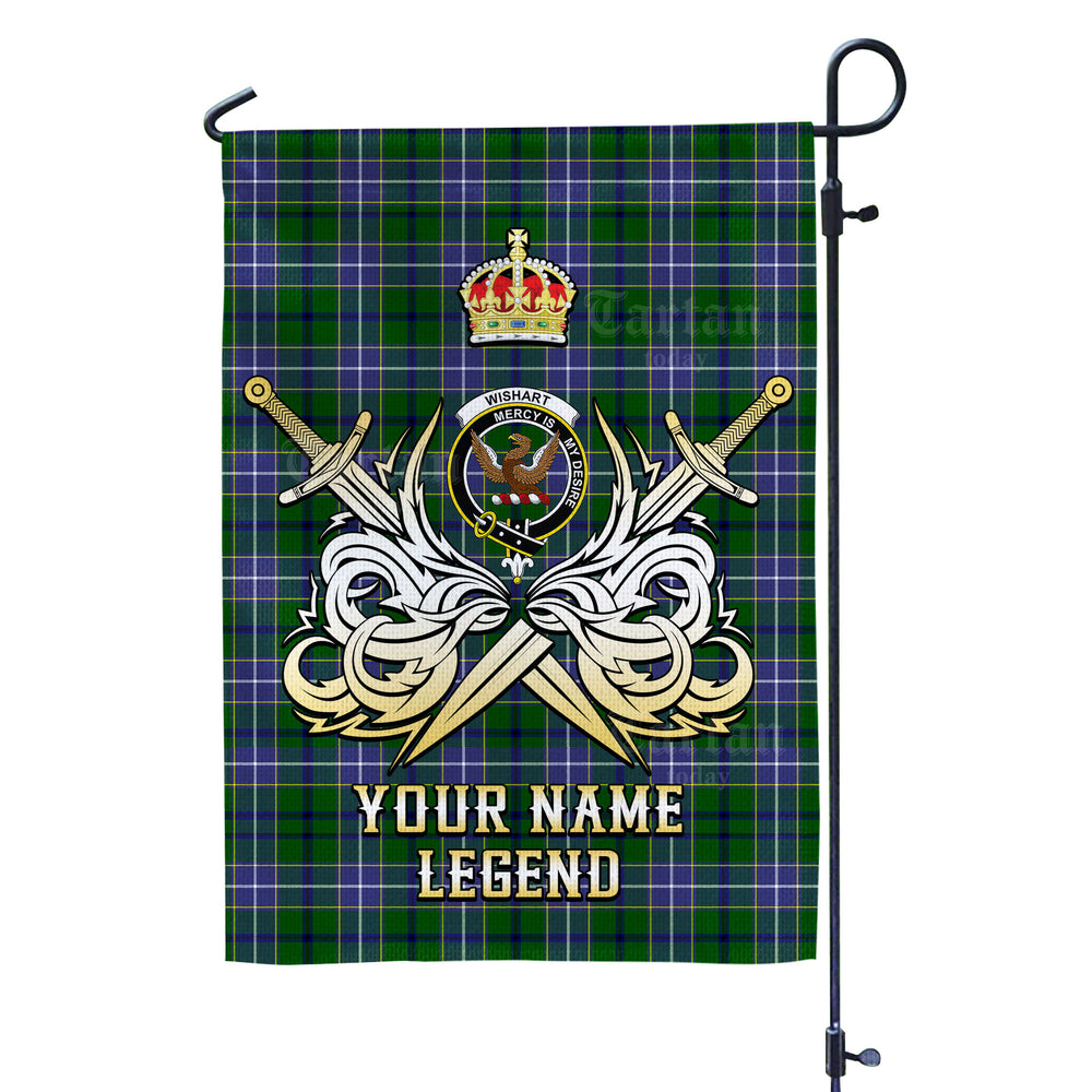 Custom Name Clan Wishart Hunting Tartan Garden Flag with Clan Crest and the Golden Sword of Courageous Legacy KR16