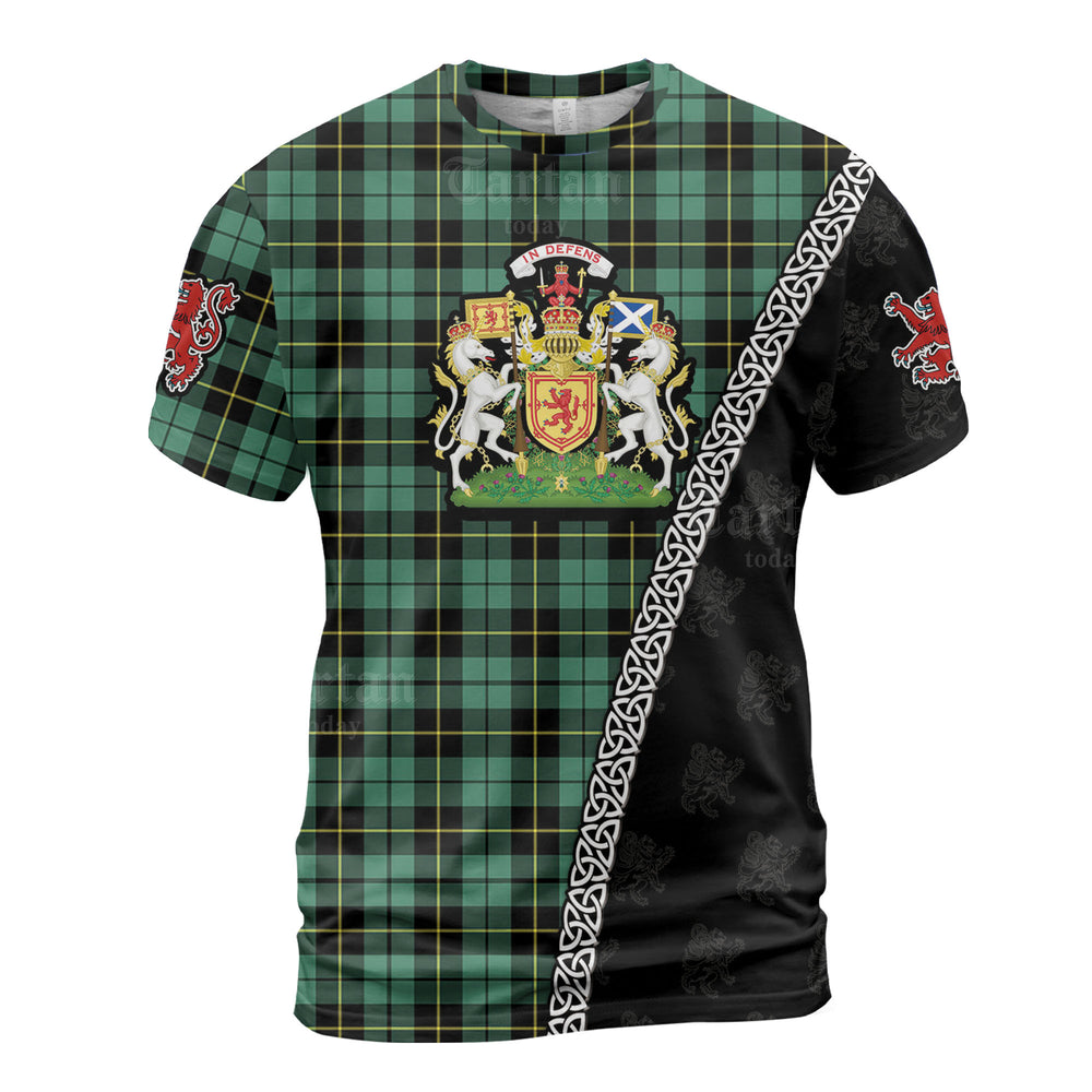 Crafted from breathable fabric, it combines traditional tartan style with modern design. The vibrant Wallace Hunting Ancient Tartan is accented by the historic Royal Coat of Arms of Scotland, symbolizing honor and legacy.